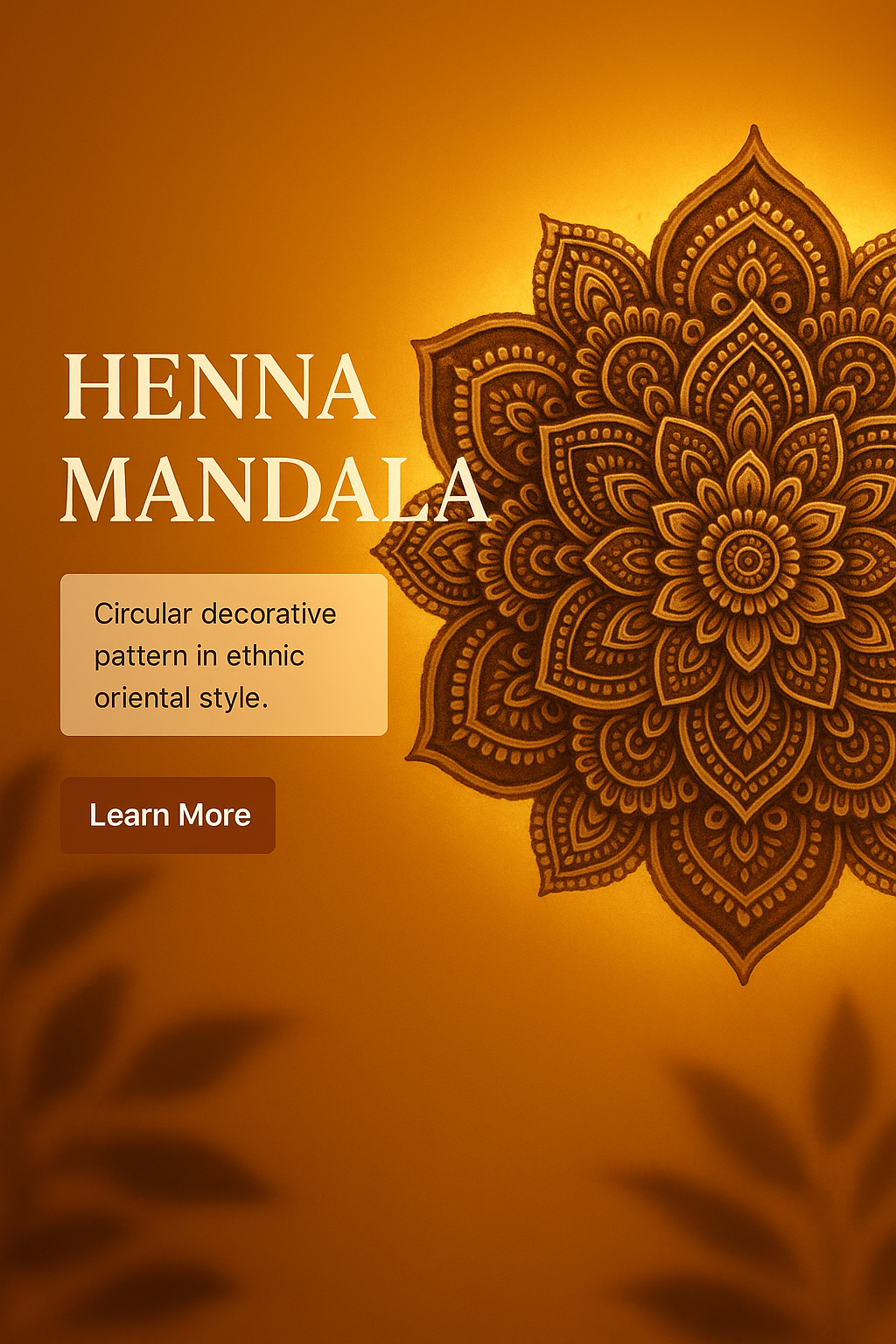 This image features a henna mandala pattern with a warm background, suitable for promoting artistic or cultural content. Ideal for social media or web banners.