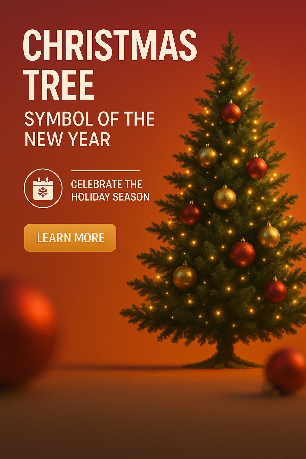 Festive Holiday Graphic Featuring Christmas Tree and New Year Celebration