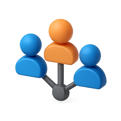 /Collection: /by davooda/Type: PNG/A 3D graphic of three colorful people icons connected by a central figure, symbolizing networking and collaboration. Ideal for social media and business presentations.