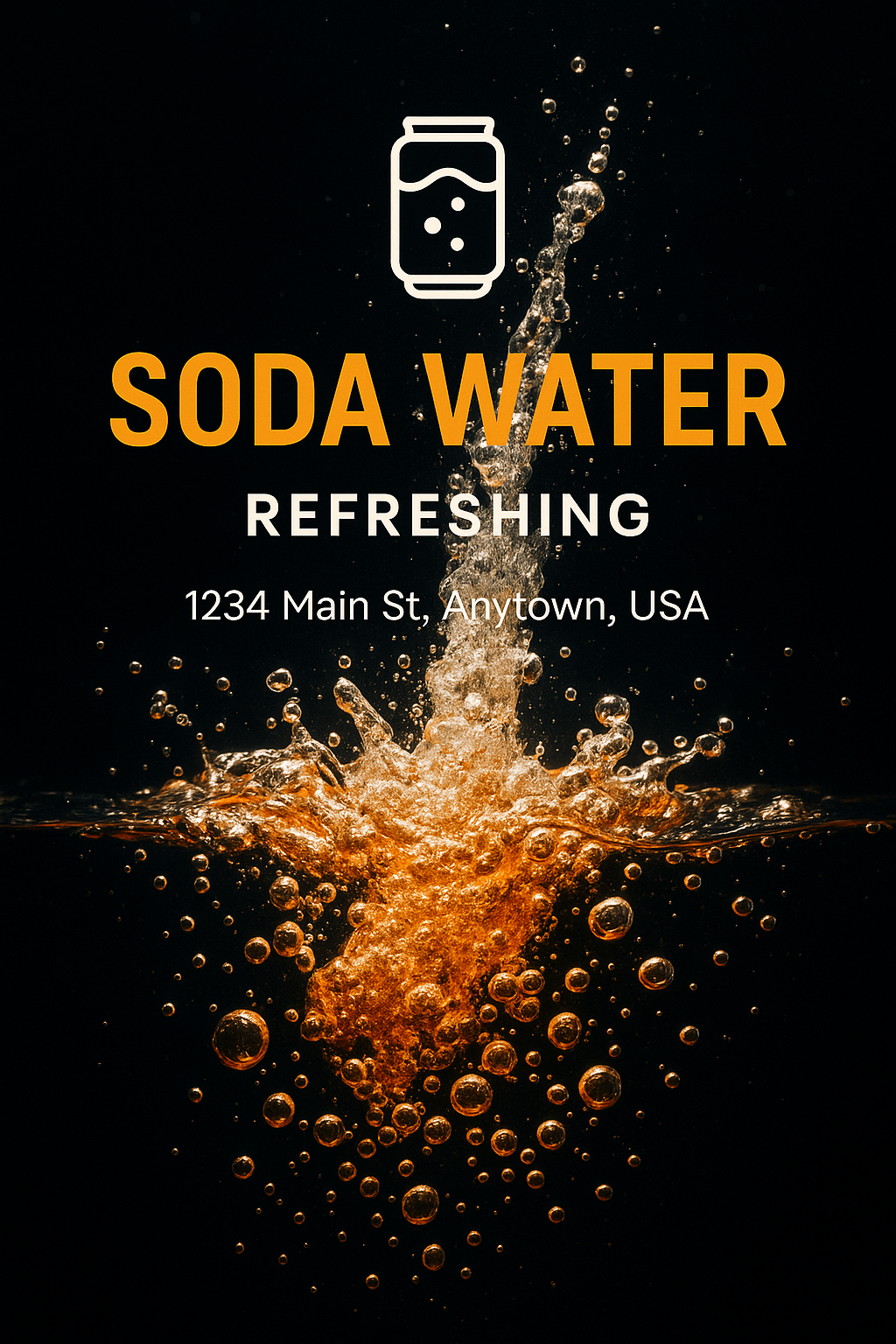 Dynamic promotional image showcasing soda water with vibrant bubbles and a bold, modern design ideal for advertising beverages.