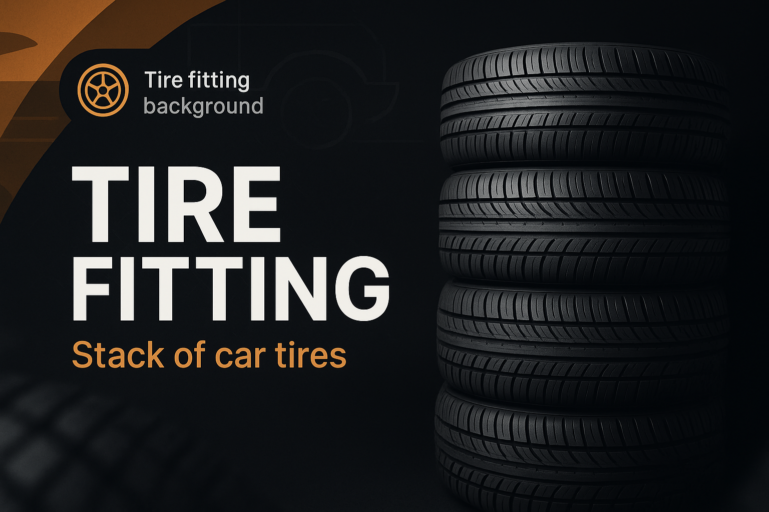 Professional graphic showcasing a stack of car tires with a modern design, ideal for automotive service promotions or tire fitting advertisements.