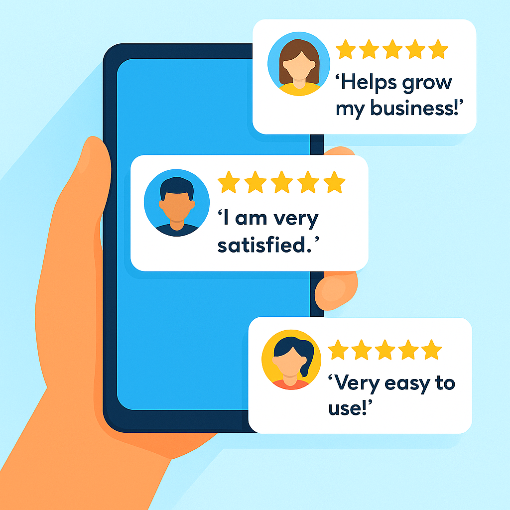 Customer Feedback Social Media Graphic Featuring Positive Reviews