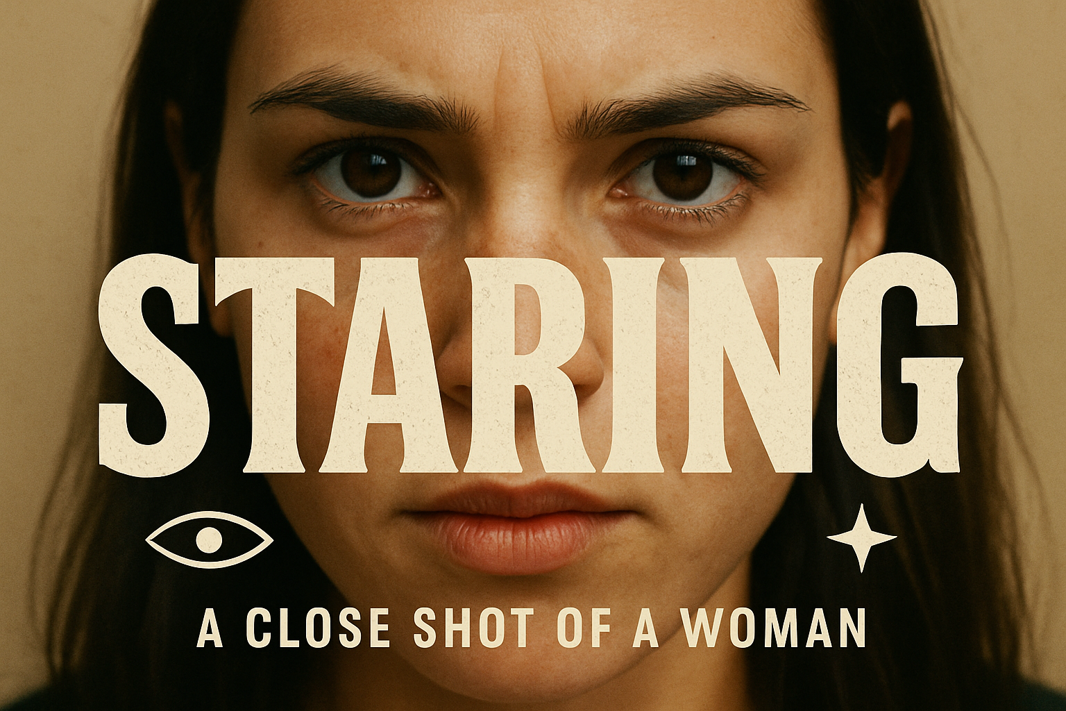 /Collection: /by davooda/Type: PNG/Intense close-up shot of a woman conveying strong emotions, featuring bold typography overlay. Suitable for artistic projects, social media, or emotional storytelling.