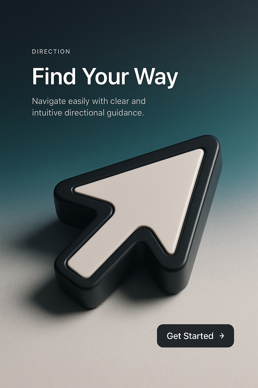 A sleek, modern direction arrow icon set against a gradient background. The icon emphasizes clarity and intuitive navigation, ideal for web design.