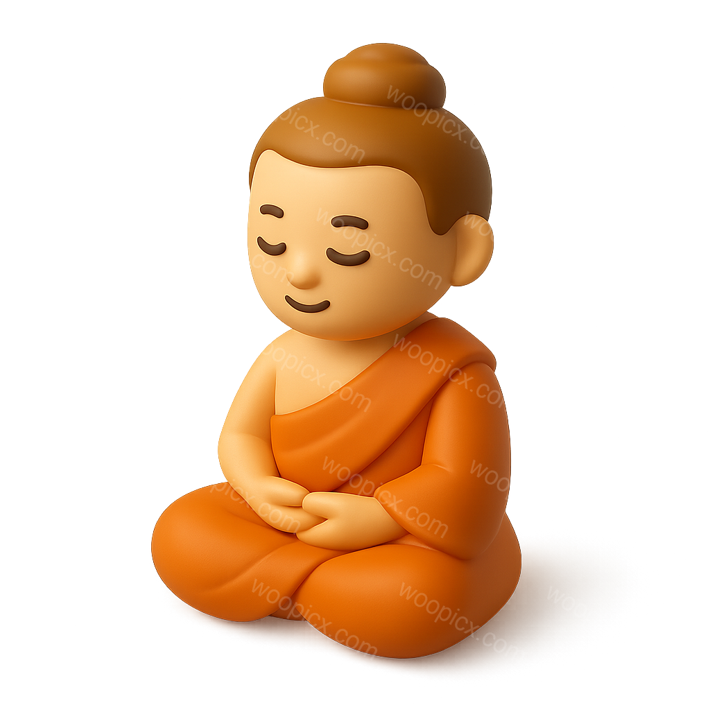 A stylized 3D icon of a seated Buddha figure, depicted in a three-quarter view. The icon features a soft orange robe and a serene expression, set against a gradient background.