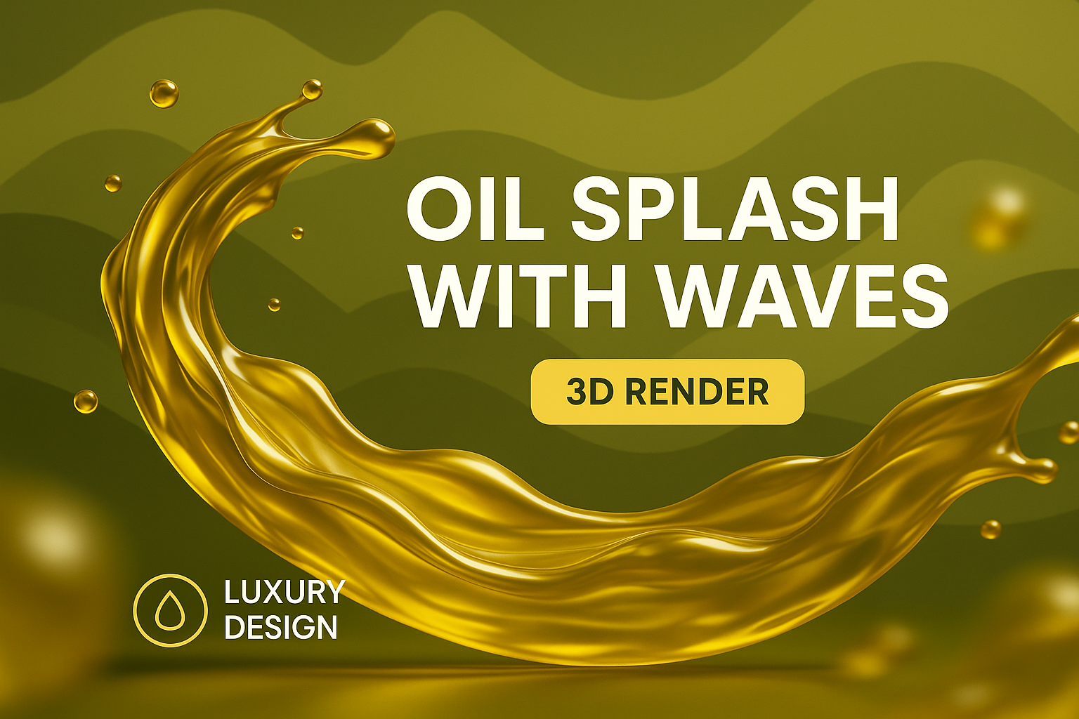 3D Rendered Luxury Oil Splash with Waves and Droplets