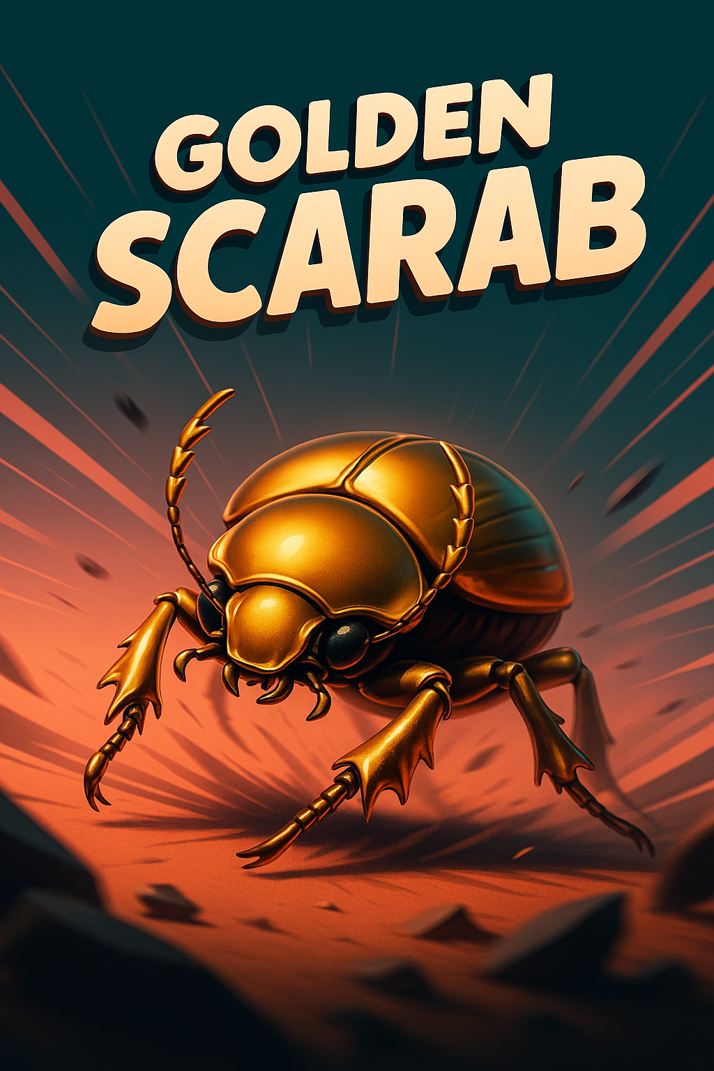 /Collection: /by davooda/Type: PNG/A striking 3D illustration of a golden scarab set against a smooth gradient background. The dynamic composition features bold typography, enhancing the visual impact.