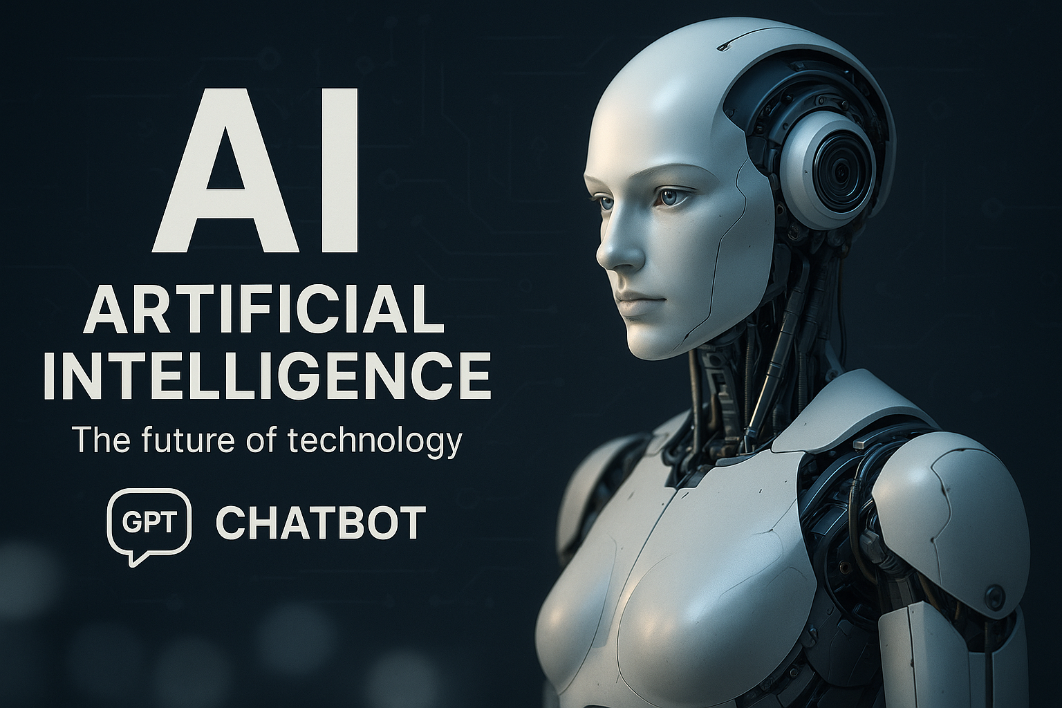 /Collection: /by davooda/Type: PNG/A striking digital illustration depicting a humanoid robot representing artificial intelligence. The modern design and dark background emphasize the theme of advanced technology, making it suitable for tech-related content.