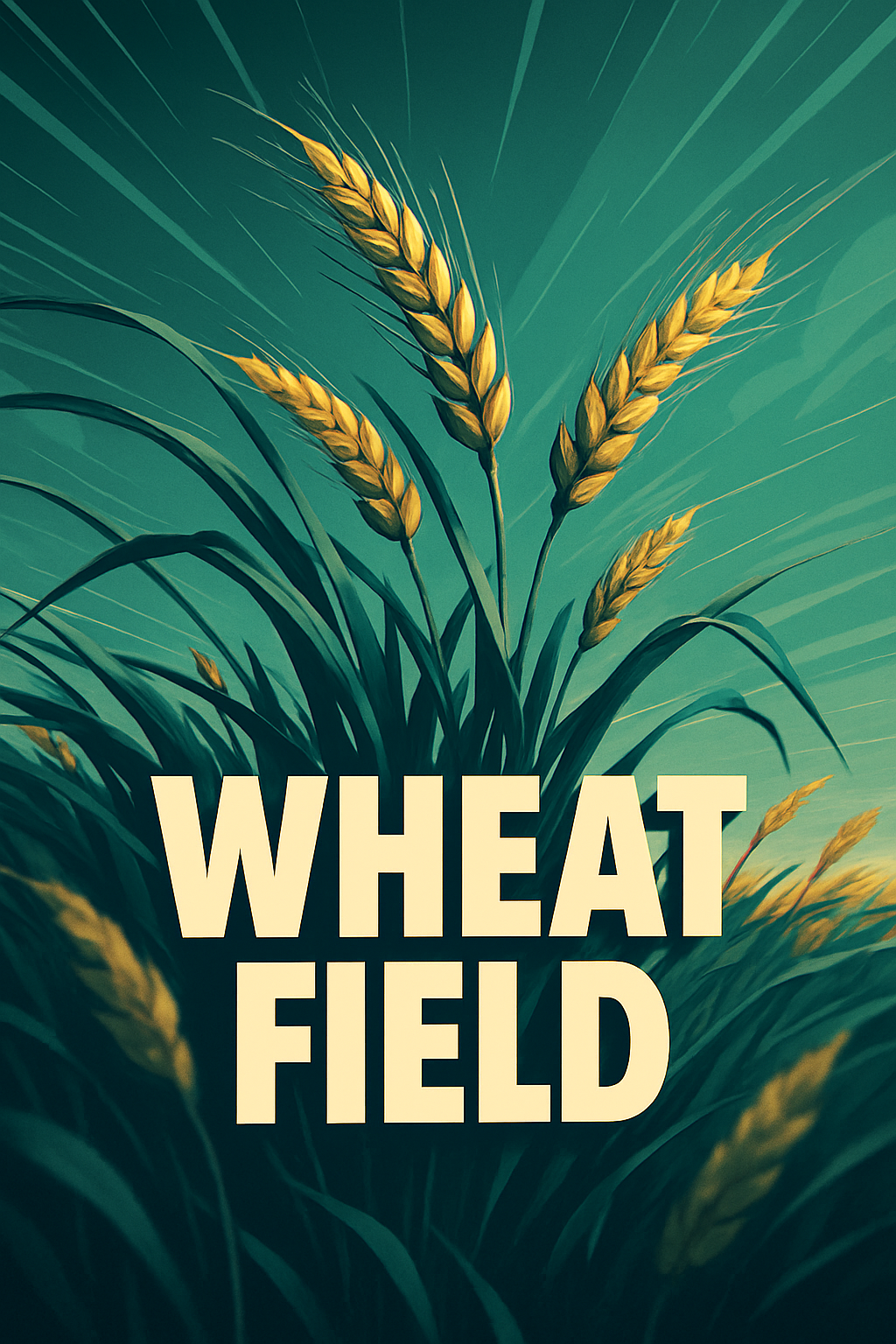 An artistic depiction of a vibrant wheat field, featuring bold typography. The scene captures dynamic energy with lines radiating from the center, enhancing the visual appeal.