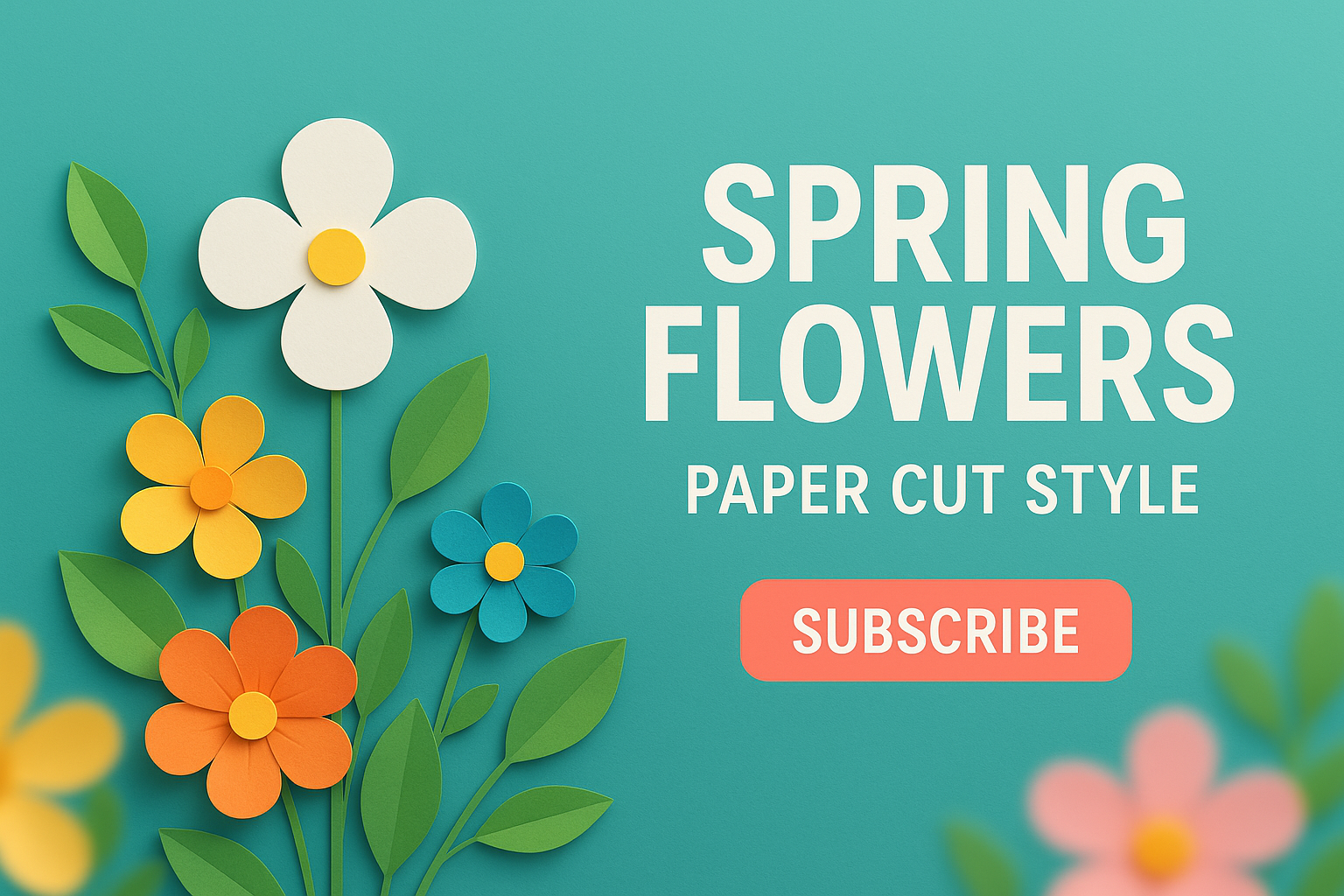 Vibrant graphic featuring a collection of spring flowers created in a paper cut style, ideal for seasonal promotions or subscription invitations.