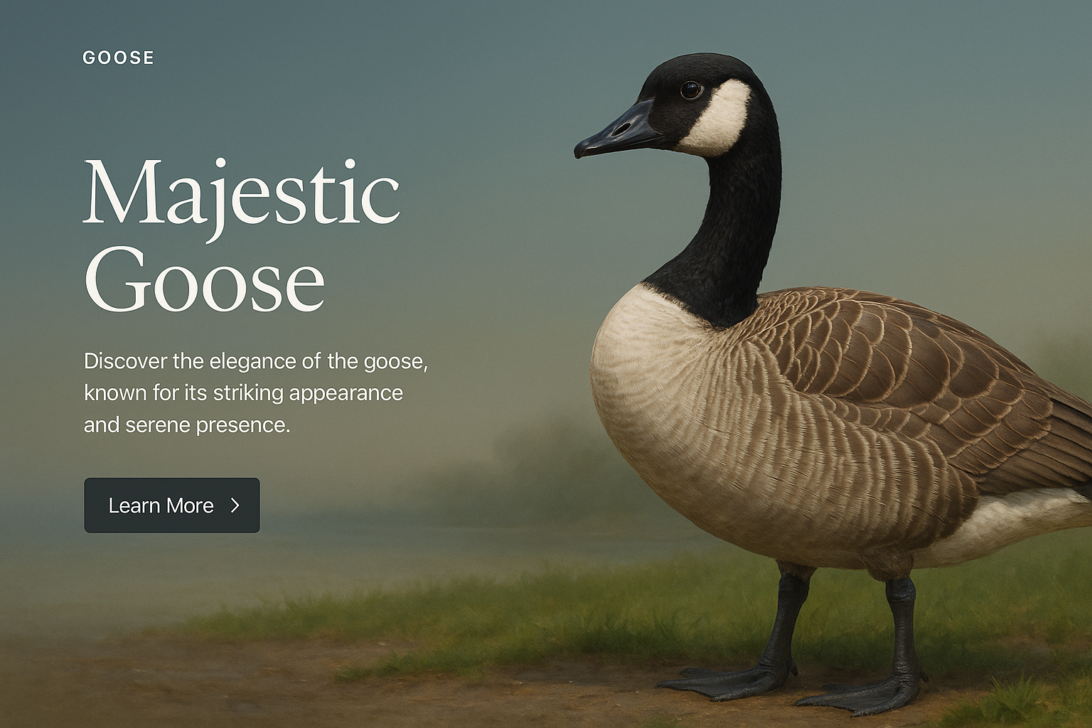 A beautifully styled illustration of a majestic goose, showcasing its striking features. The composition includes a gradient background and a well-structured text layout for web design.