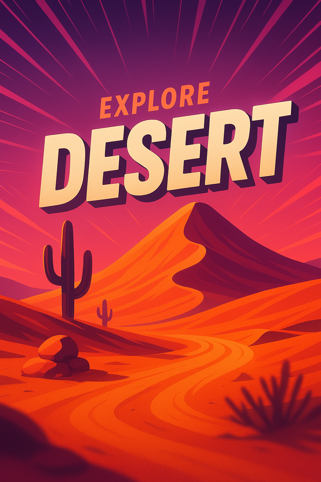 Dynamic Desert Scene with Bold Typography and Vibrant Colors