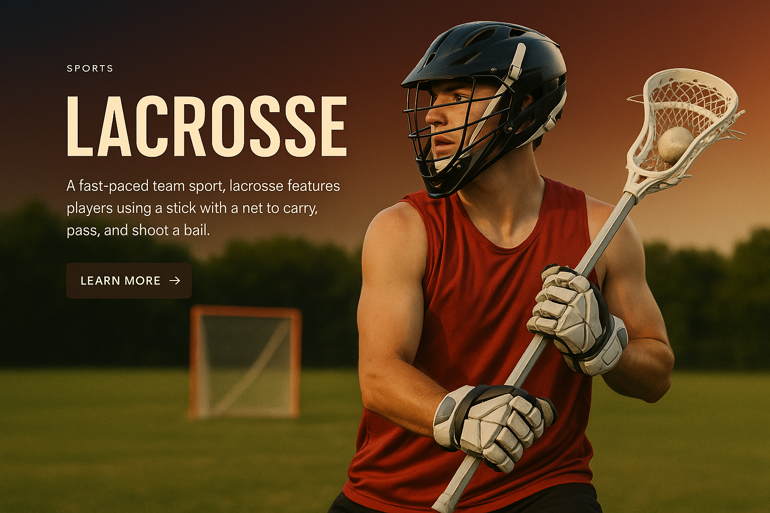 /Collection: /by davooda/Type: PNG/A web design concept for lacrosse featuring a player in action, highlighting the sport's dynamic nature. The design includes a layered composition with a gradient background and clear text elements.