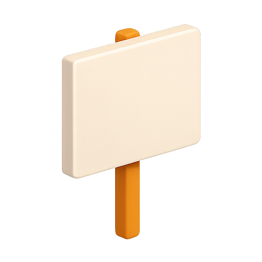Stylized icon of a blank signpost featuring a rectangular white board on an orange vertical pole, suitable for various applications like signage or digital graphics.
