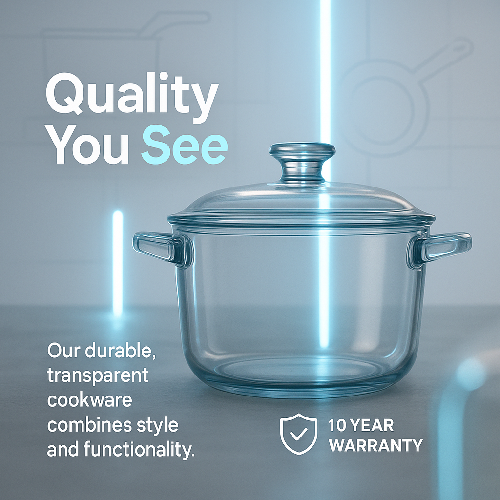 Modern Cookware Advertisement Featuring Transparent Pot Design