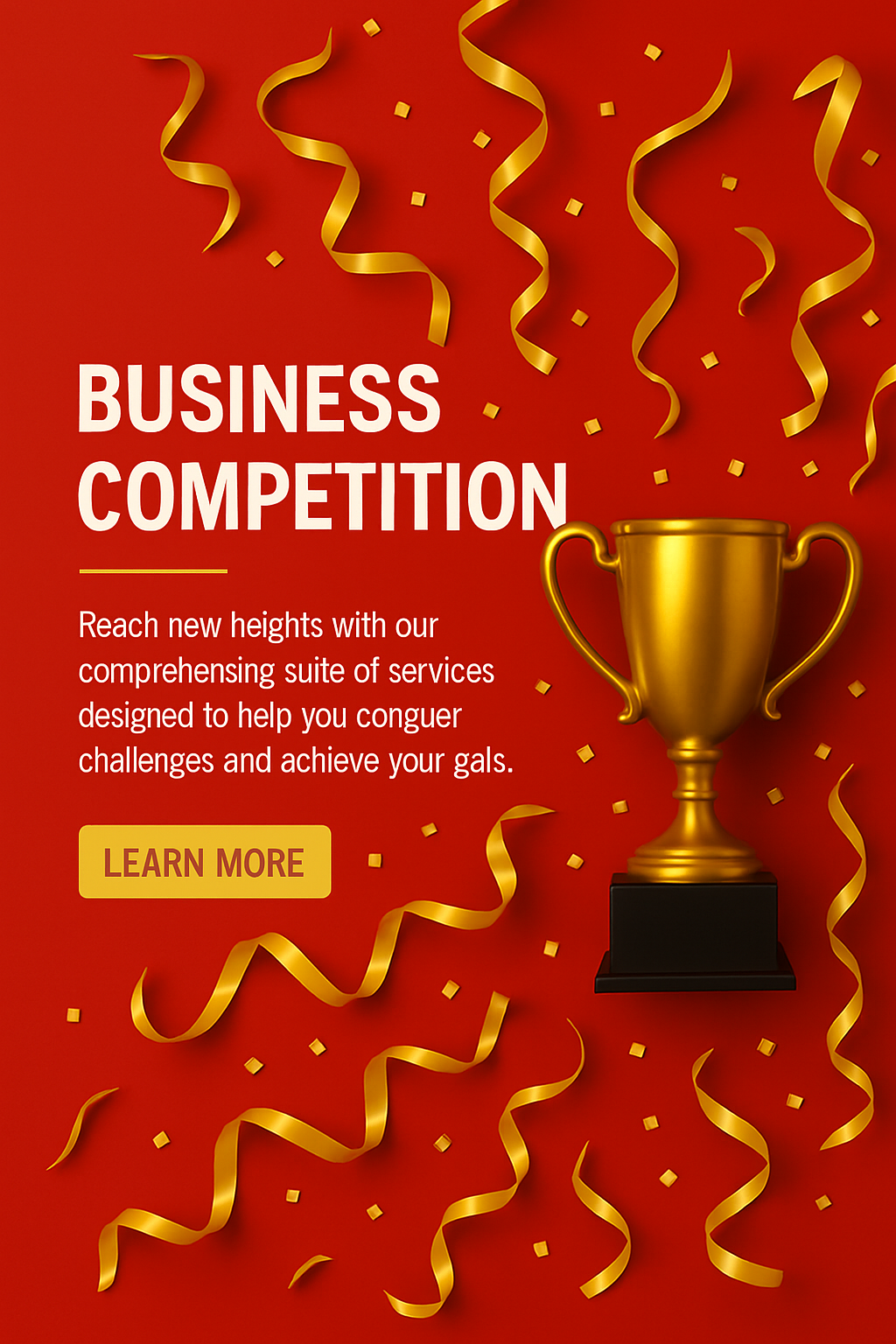 /Collection: /by Sergey Leonov/Type: PNG/Vibrant promotional banner featuring a golden trophy and festive confetti on a red background, ideal for marketing business competitions or awards. Engaging design with a call to action.