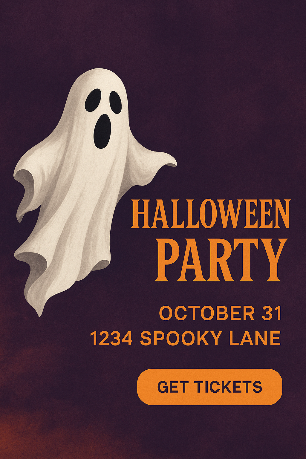 Halloween Party Promotion Poster Featuring Ghost Illustration