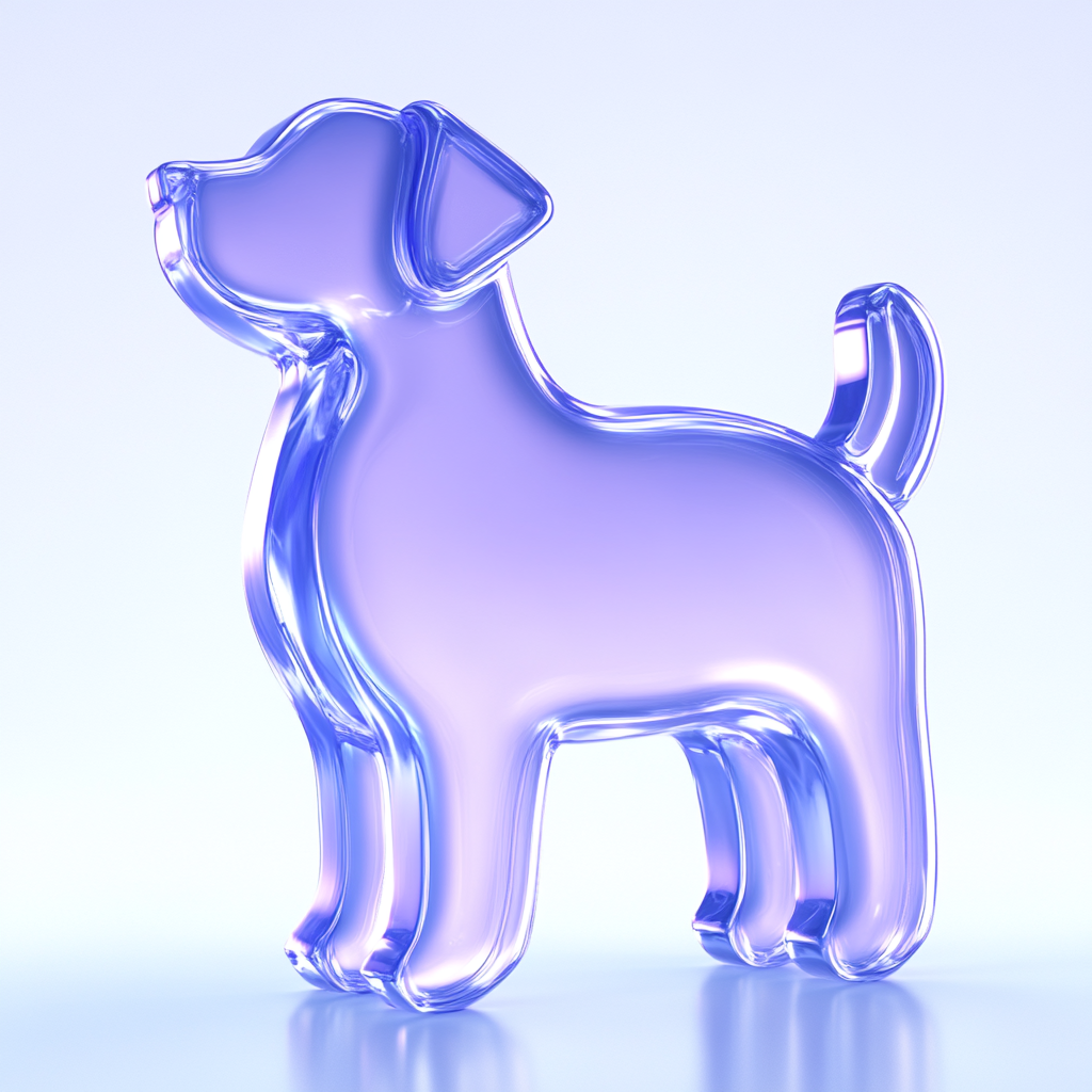 A modern 3D illustration of a transparent dog figurine, featuring smooth lines and a soft color palette, suitable for pet-related branding or decorative purposes.