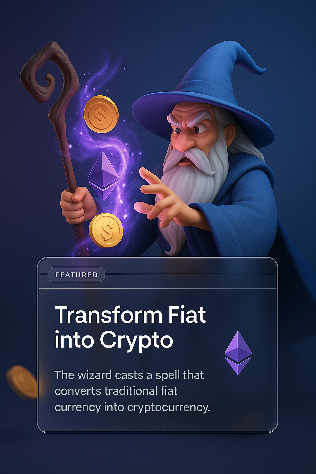 Wizard Casting Spell to Transform Fiat into Cryptocurrency