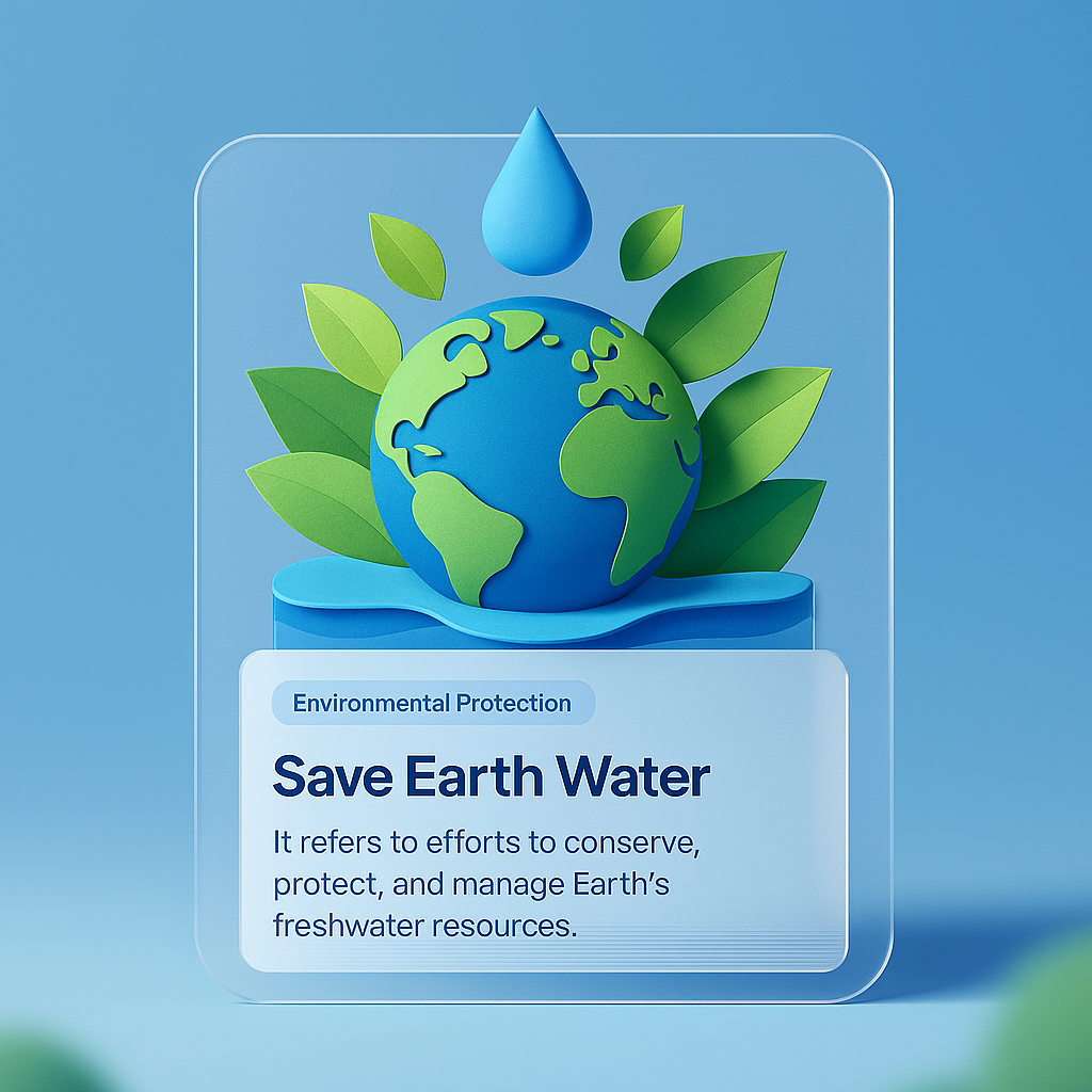/Collection: /by davooda/Type: PNG/A vibrant 3D illustration showcasing Earth with greenery and a water drop, emphasizing water conservation and environmental protection. The design incorporates a clear layered structure.