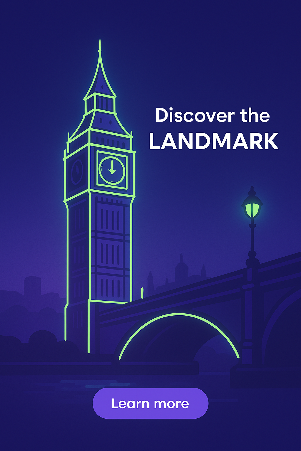 /Collection: /by davooda/Type: PNG/A vibrant illustration of a landmark featuring glowing outlines in light yellow-green, blue, and violet shades. The scene is set against a solid blue background, enhancing the glowing effect.