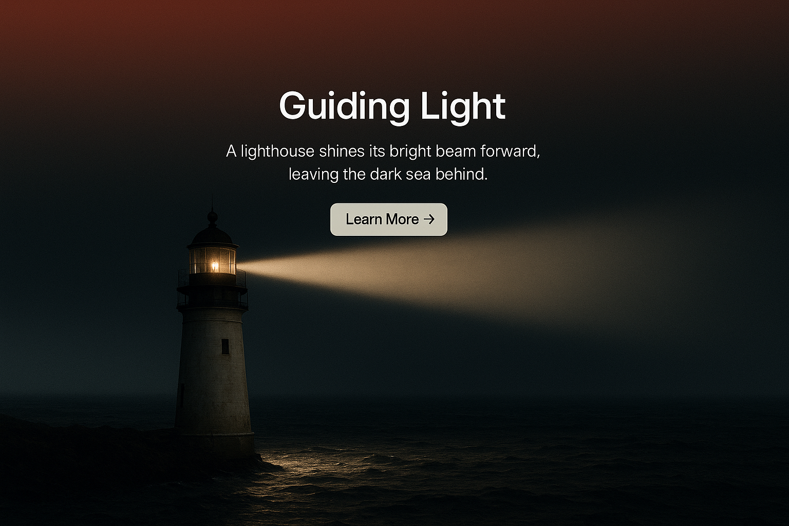 A lighthouse stands tall, casting a bright beam over the dark sea, symbolizing guidance. The gradient background enhances the dramatic effect of the scene.