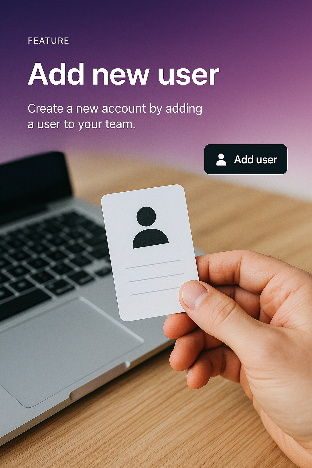/Collection: /by davooda/Type: PNG/A stylish minimalist web design showcasing a hand holding a user card near a laptop. The background features a two-color gradient, enhancing readability and focus on the action button.