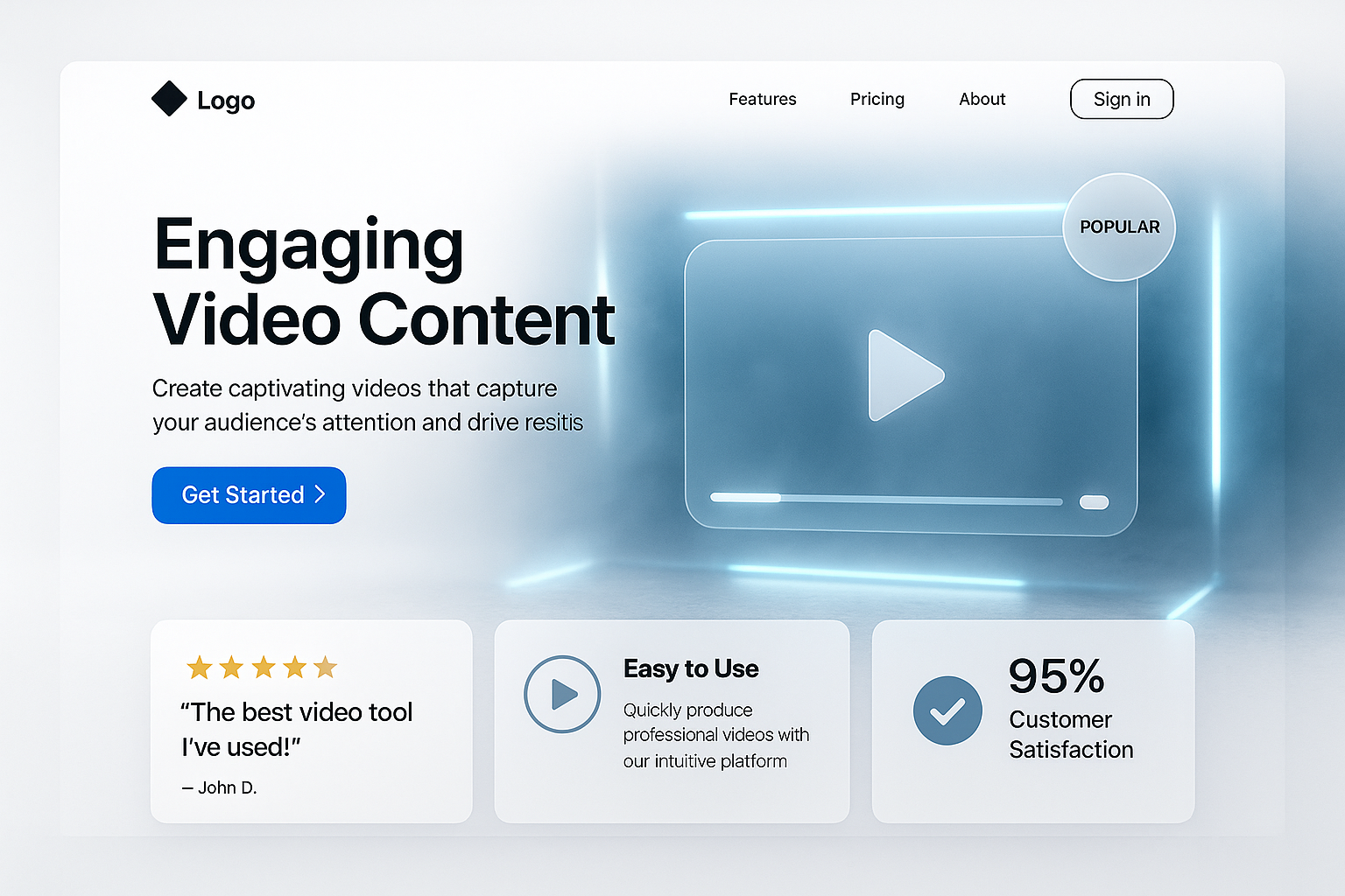 Modern Minimalist Landing Page Design with Video Content