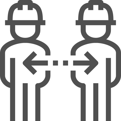 outline simple icon: collaboration, construction, engineering, engineers, safety helmets