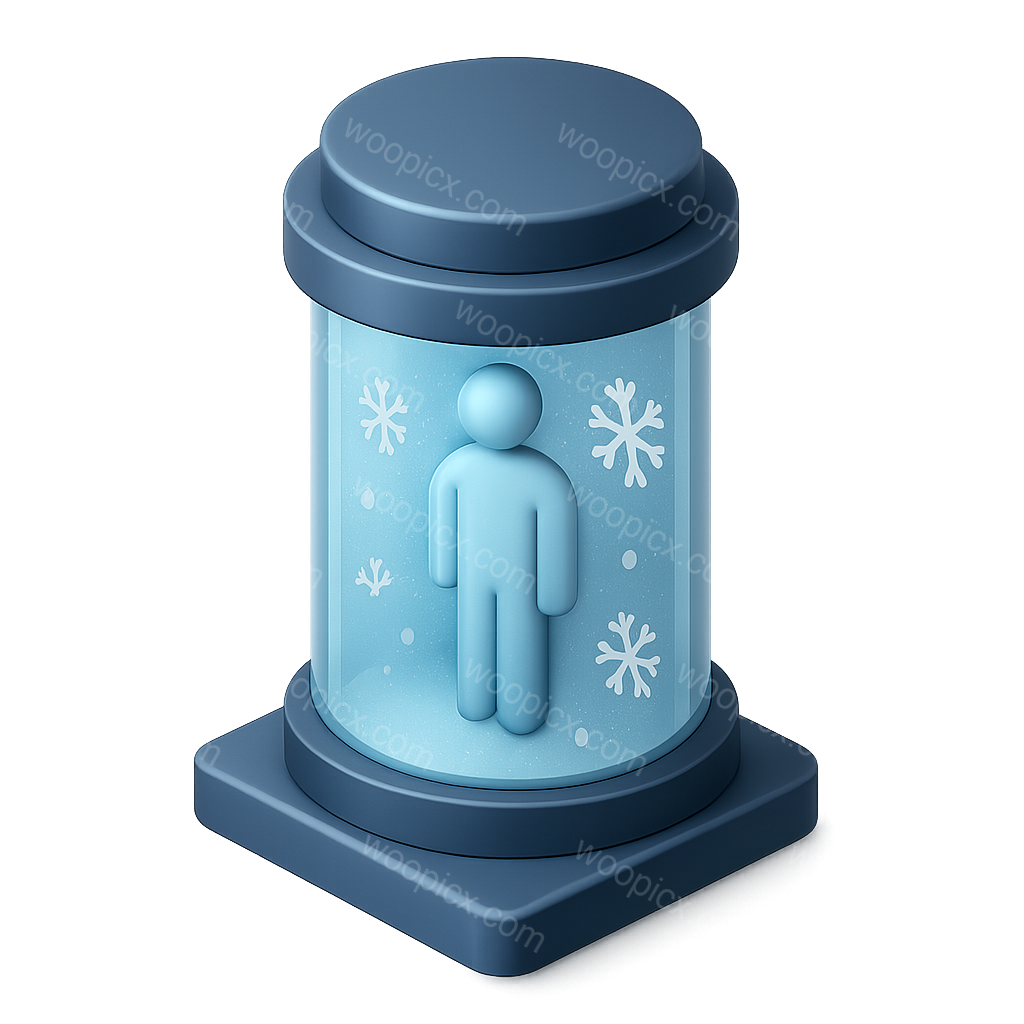 Stylized 3D Icon of a Frozen Figure in a Glass Container
