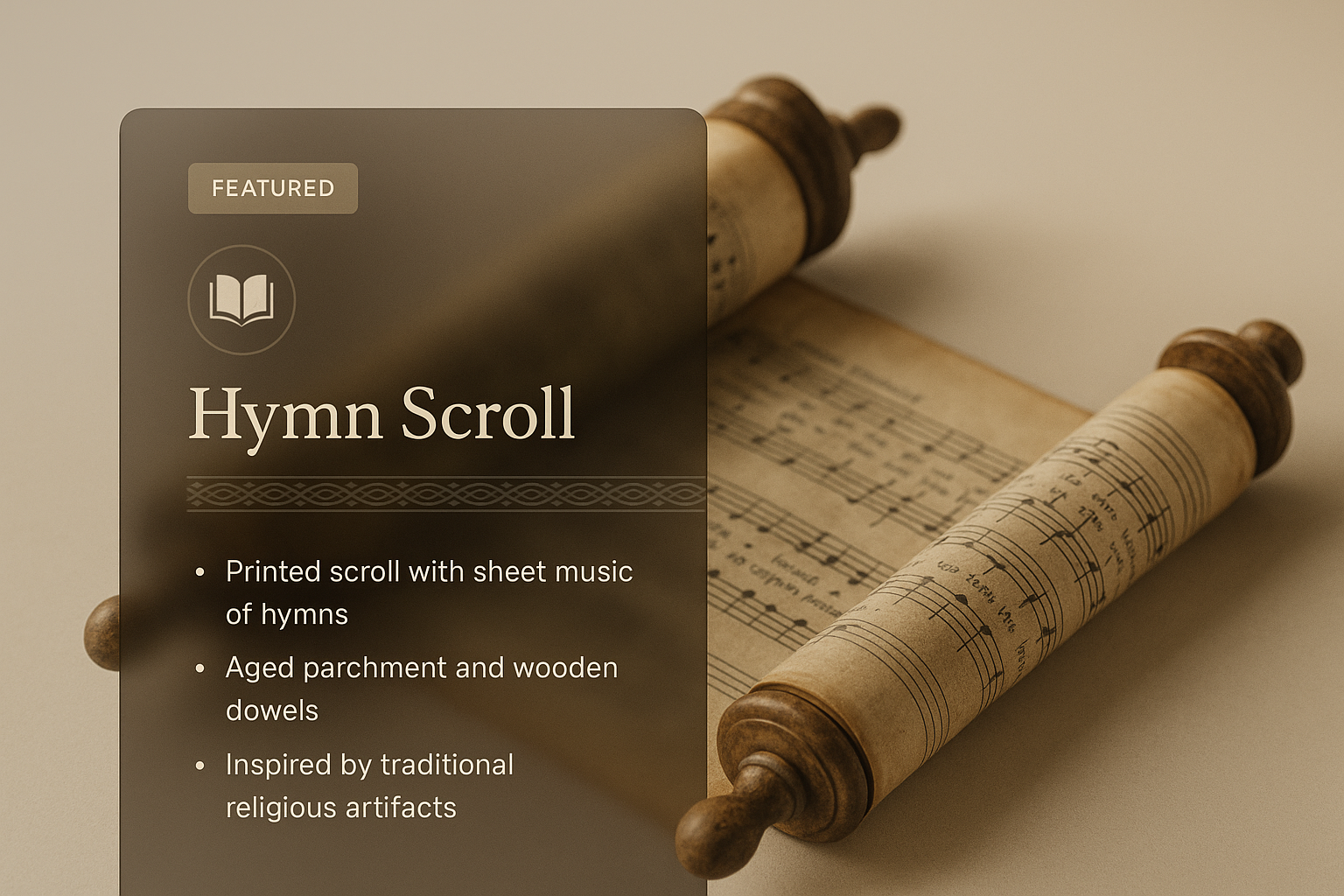 This image showcases a beautifully designed web page featuring a hymn scroll. The layout includes a gradient background, a featured label, and a detailed description, all elements harmoniously integrated.