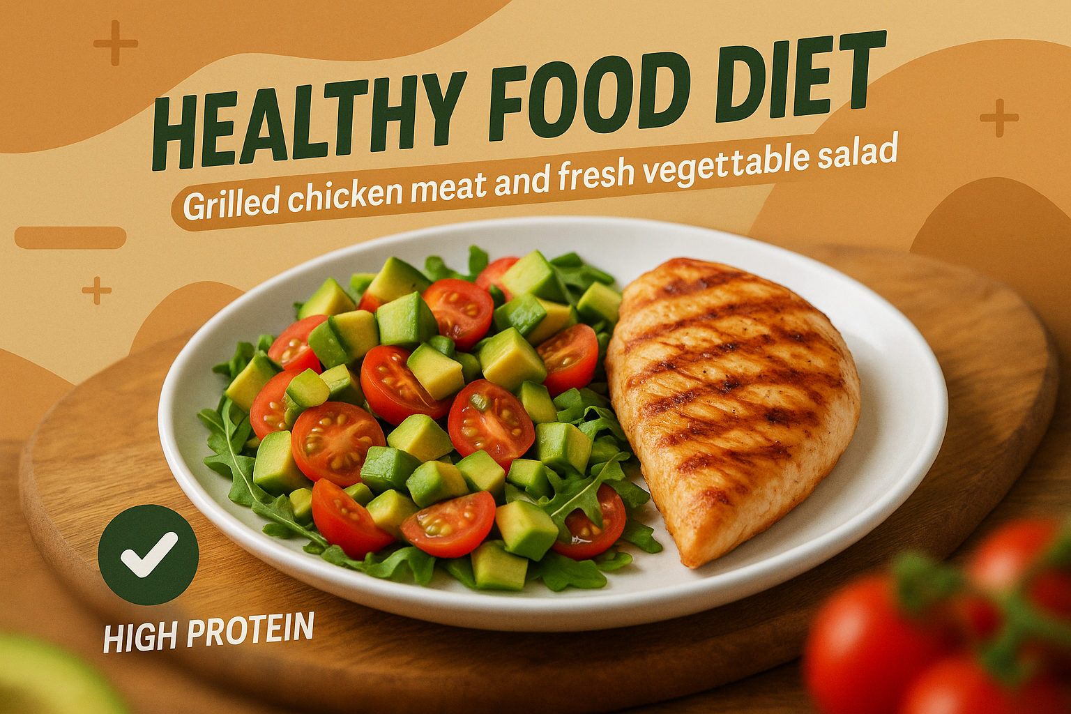 Healthy Food Diet Plate Featuring Grilled Chicken and Salad