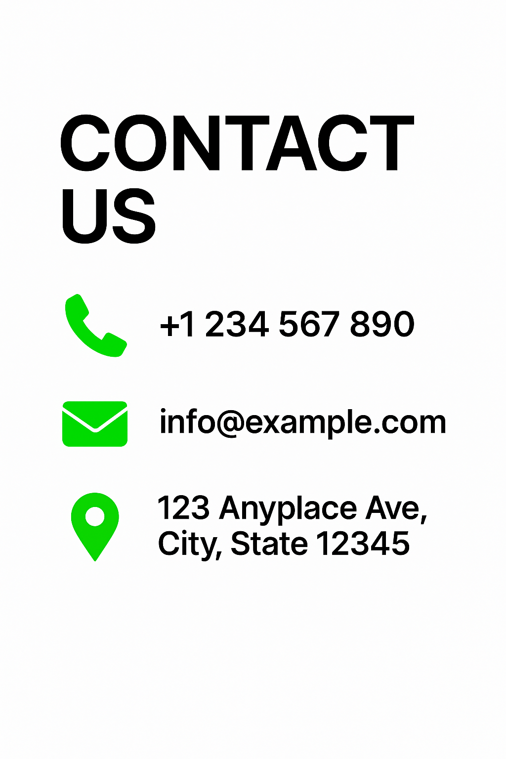 Simple and modern contact information card featuring essential details like phone number, email, and address. Ideal for business use and networking.