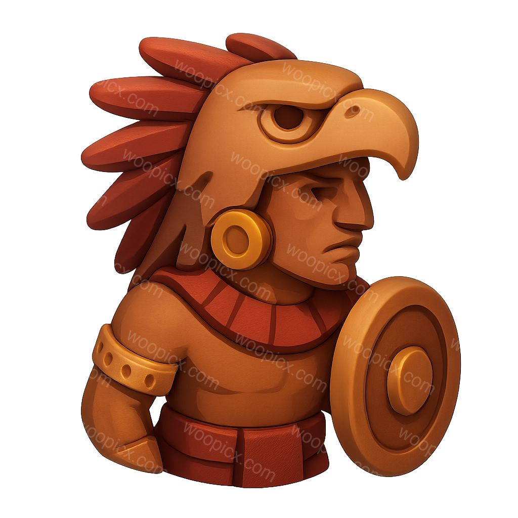 A 3D icon depicting an Aztec eagle warrior with a distinctive headdress and shield. The artwork features a three-quarter view and a volumetric feel against a soft gradient background.