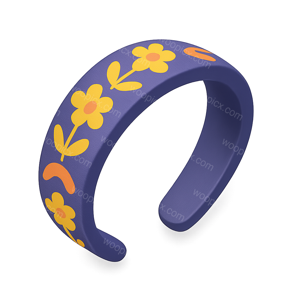 A vibrant 3D headband featuring a floral design with yellow flowers on a blue background. The icon displays a three-quarter view, offering a volumetric aesthetic.