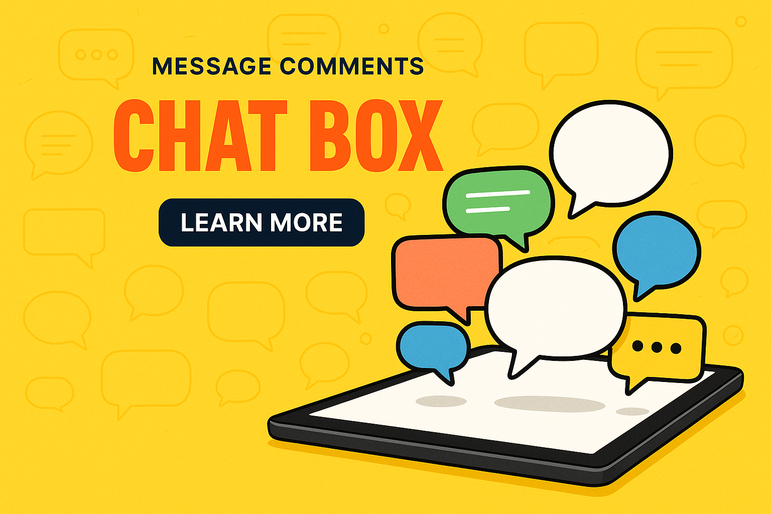 /Collection: /by davooda/Type: PNG/A vibrant comics chat interface featuring colorful speech bubbles and a tablet. The bright background enhances the modern, playful style, with bold typography and a structured layout.