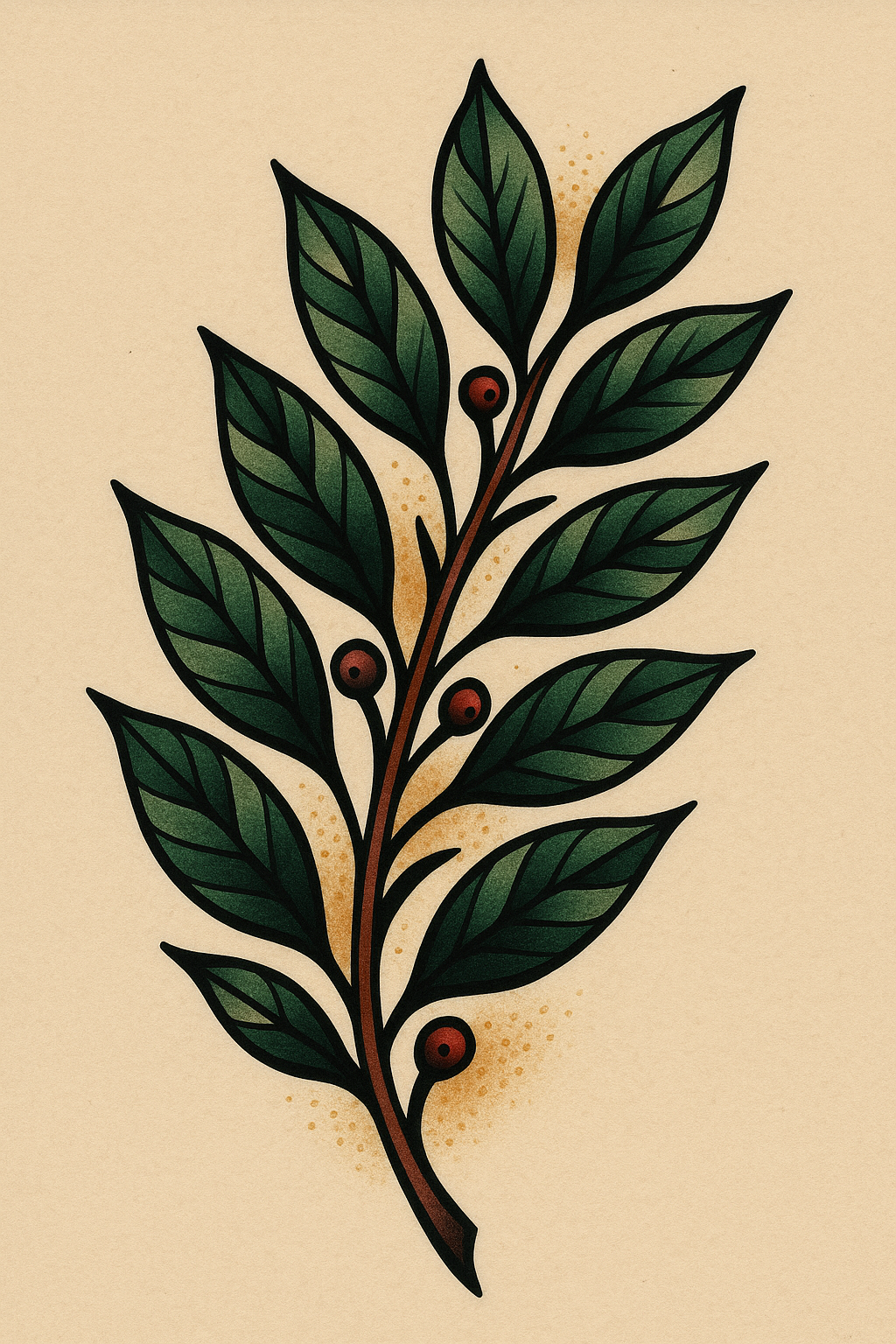 Stylized Coffee Plant Illustration with Beans and Leaves