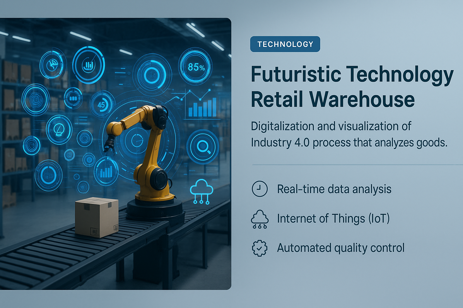 Futuristic Retail Warehouse with Robotics and Data Visualization