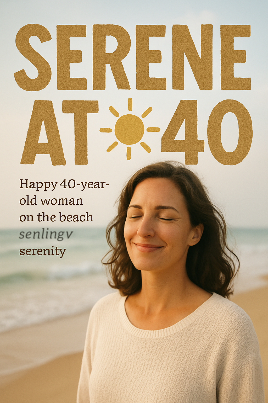 /Collection: /by davooda/Type: PNG/A serene social media post featuring a joyful woman celebrating her 40th birthday on the beach, embodying tranquility and self-acceptance, ideal for personal milestones and inspirational content.