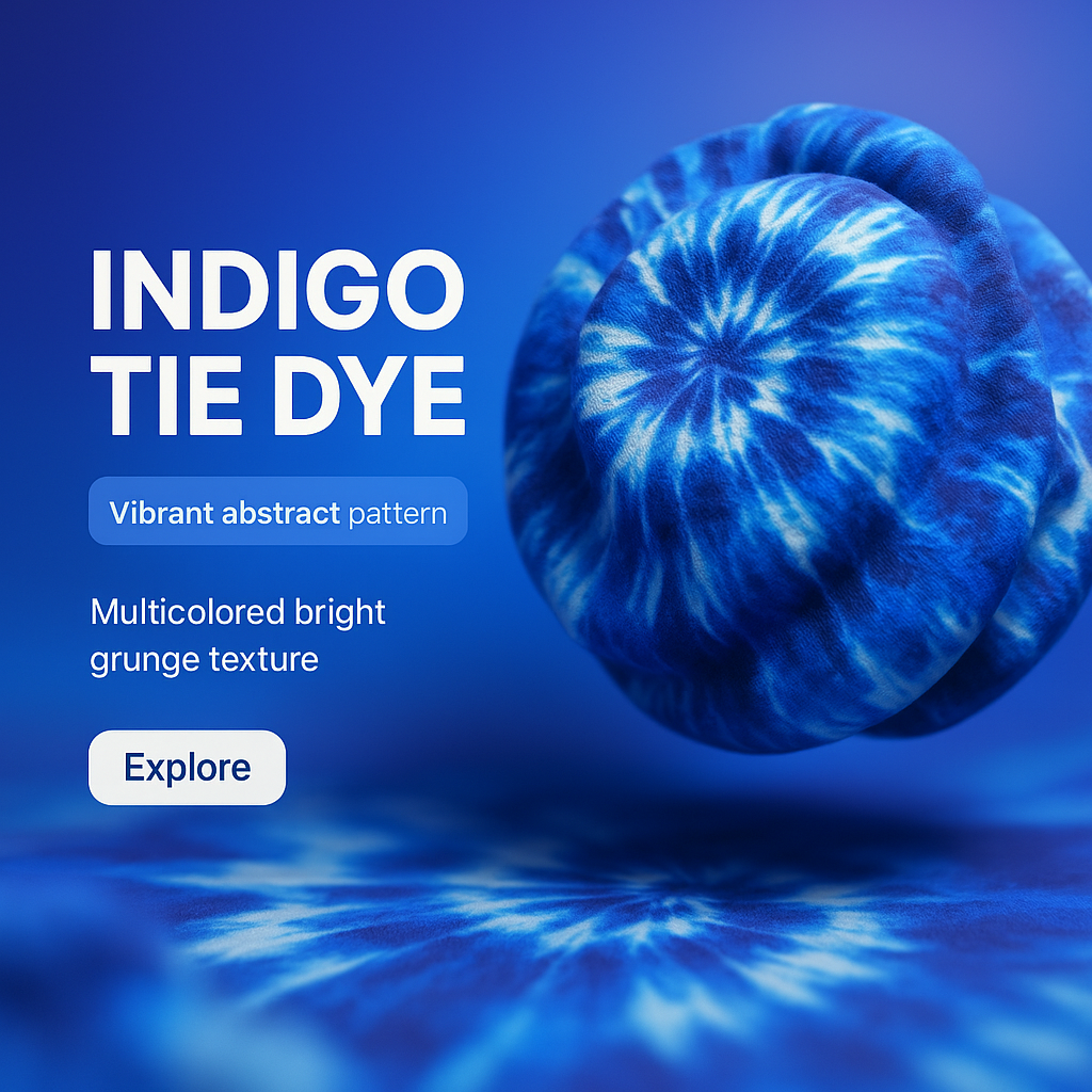 A visually striking abstract pattern showcasing vibrant indigo tie dye with a bright grunge texture, ideal for creative projects or fashion-related content.
