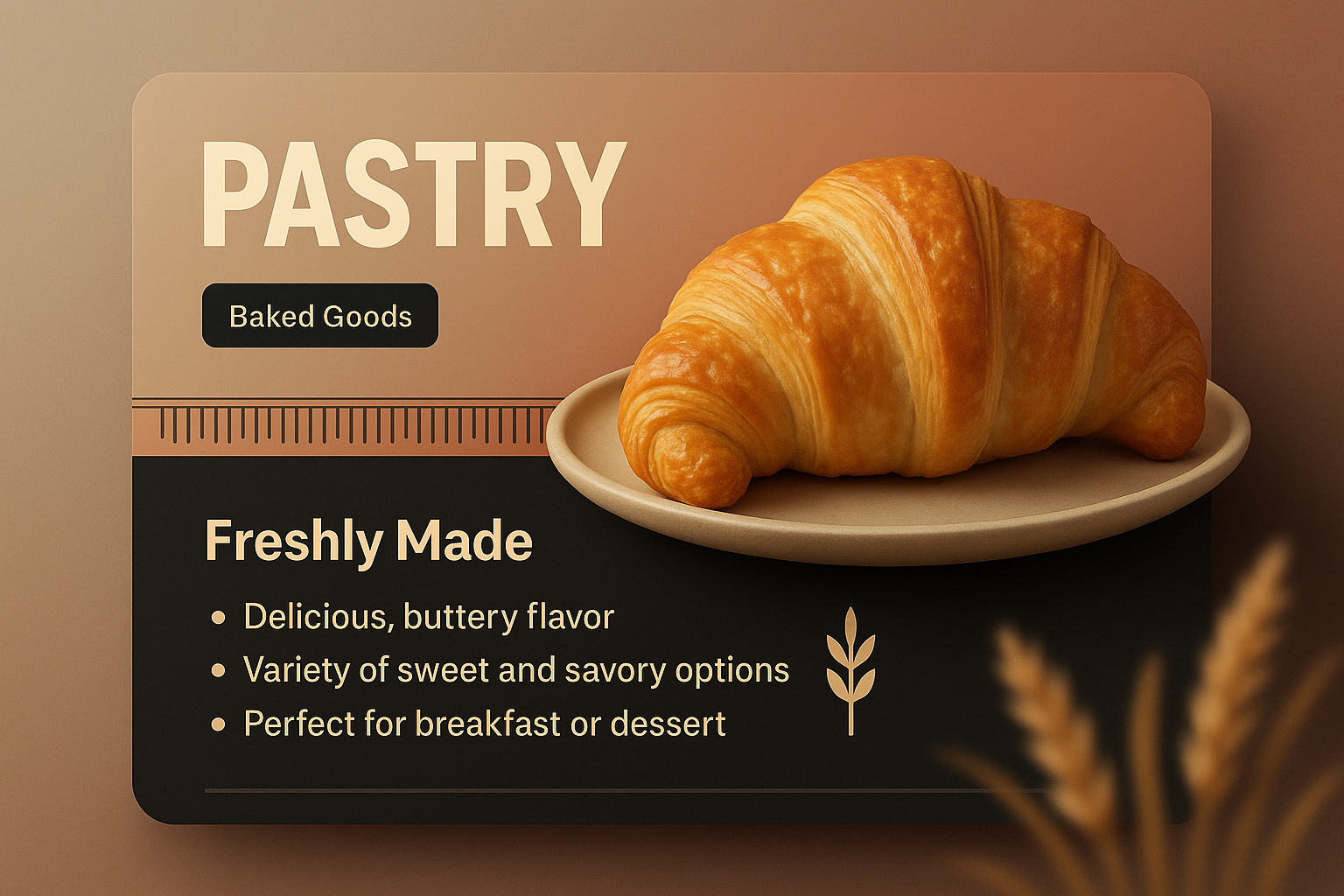 A visually appealing 3D illustration of a pastry, featuring a gradient background and an informative overlay. The design includes tasty descriptions and a rich texture.
