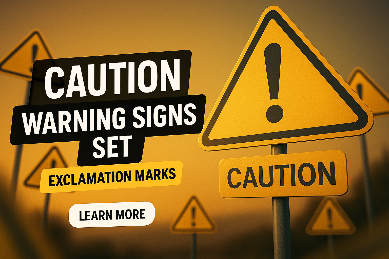 A visually striking graphic showcasing a set of caution warning signs with bold typography, ideal for safety awareness campaigns or informational content.