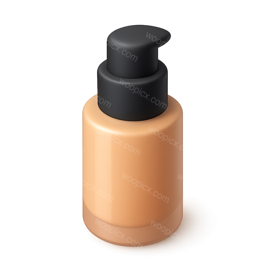 A visually appealing 3D icon of a foundation bottle featuring a pump cap. The design showcases a smooth, glossy finish and a volumetric appearance, suitable for cosmetic branding.
