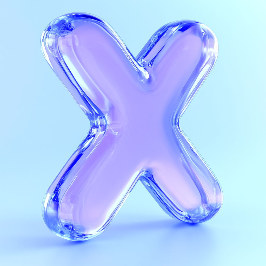 A stylized 3D representation of an 'X' shape with a glossy finish, set against a soft blue background. This design is suitable for digital media and branding purposes.