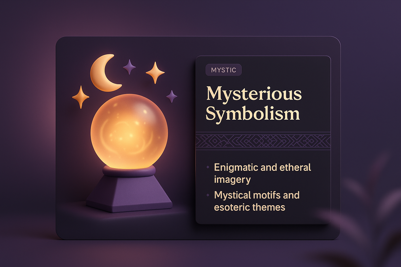 A captivating 3D illustration featuring a glowing crystal ball, stars, and a crescent moon. The design integrates dark thematic elements with a stylish text block, enhancing the mystic atmosphere.