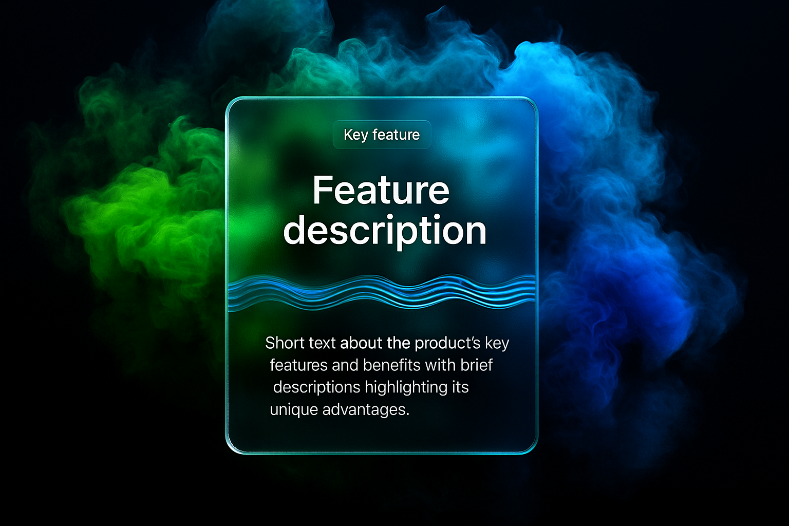 /Collection: /by davooda/Type: PNG/An abstract backdrop featuring swirling clouds of green and blue smoke against a solid black background. The design includes a transparent overlay showcasing key features and descriptions.