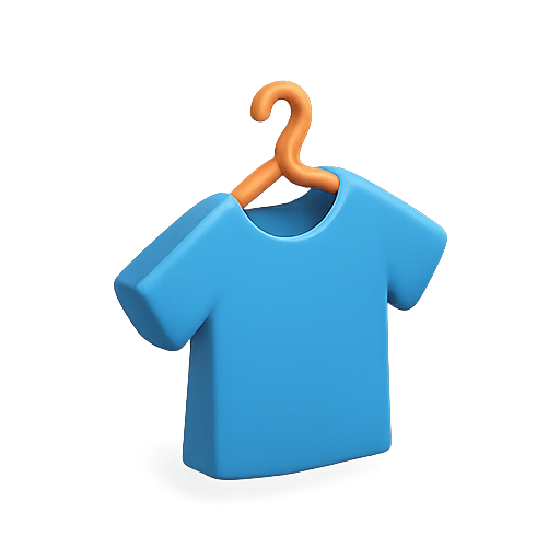 /Collection: /by davooda/Type: PNG/A stylized 3D icon of a blue shirt hanging on a hanger, ideal for fashion-related applications. The design is simple yet modern, appealing for e-commerce or clothing brand visuals.