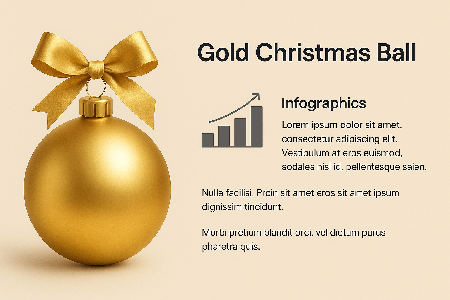 Stylish graphic featuring a golden Christmas ornament adorned with a ribbon, accompanied by infographic elements, ideal for holiday marketing and design.