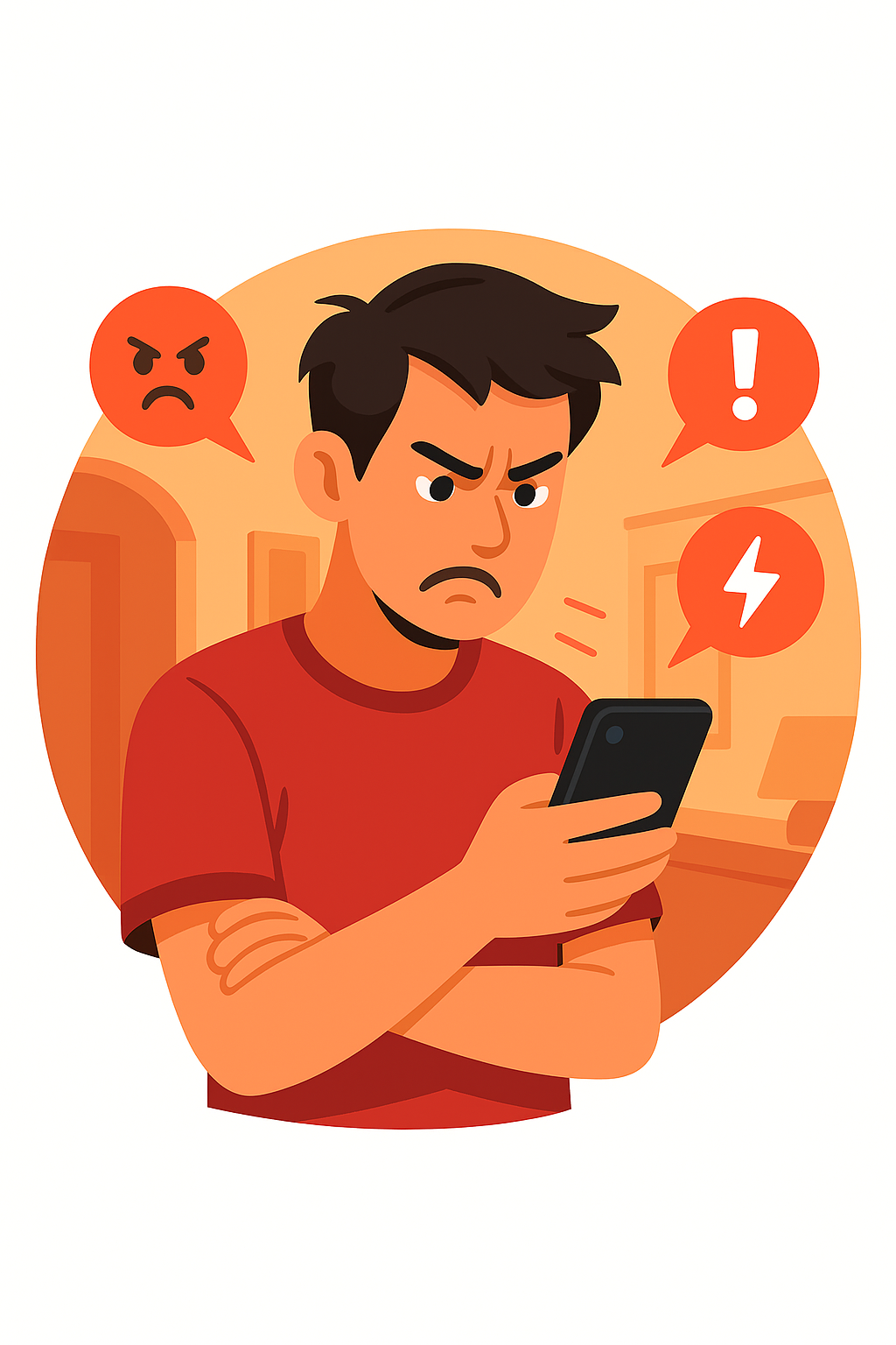 Illustration of a Person Reacting to Negative Comments on a Smartphone