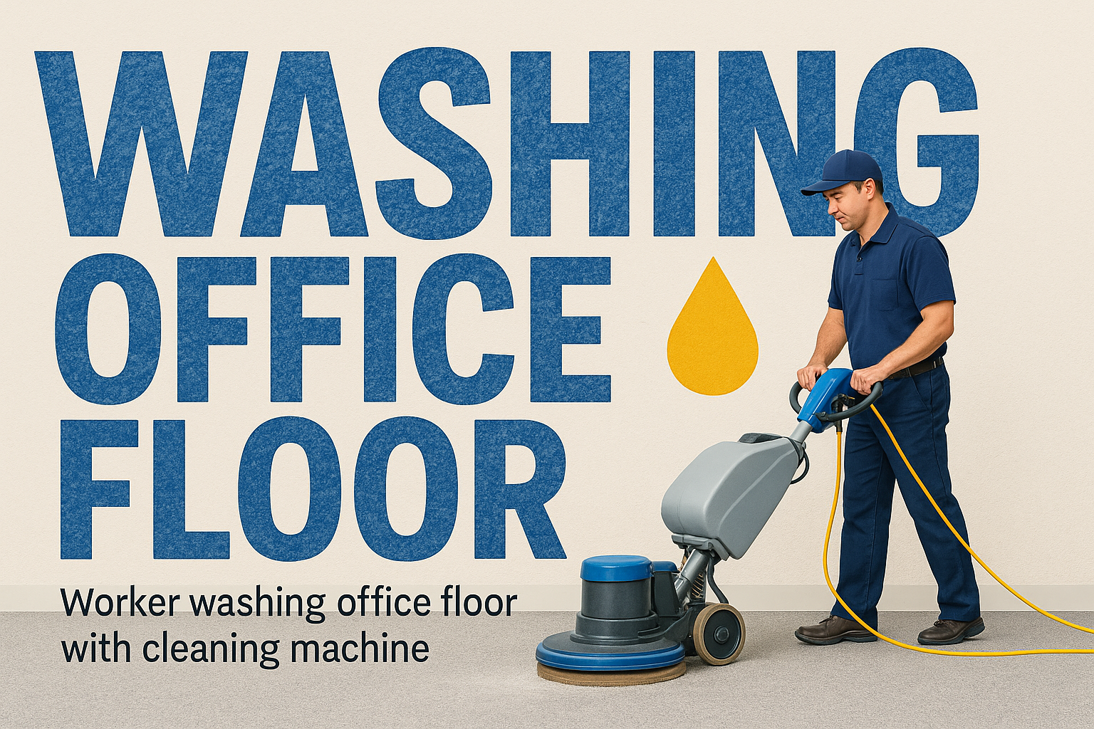 Professional Floor Cleaning Image Featuring Worker with Equipment